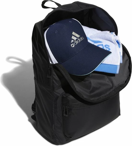 Als je reist voor de sport, neem dan een tas mee waar je al je onmisbare spullen in kunt stoppen. Deze adidas golfrugzak vouw je op in een zakje voor makkelijk meenemen. Het ripstop is licht en robuust. In het voor- en binnenvak met rits berg je je kleine spullen veilig op, en dankzij de verstelbare schouderriemen blijf je comfortabel. Deze opbergbare rugzak is dus een must have voor in je golf uitrusting.