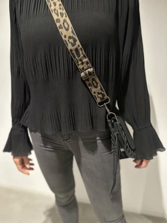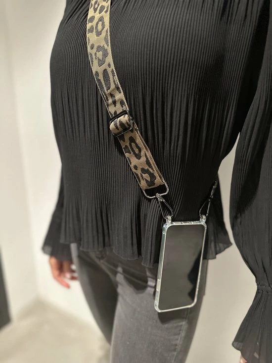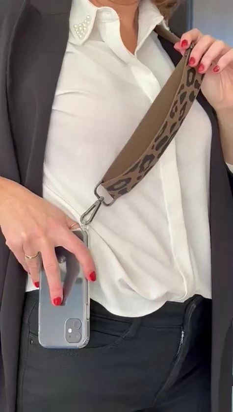Deze bruine schouderband met dieren print is te gebruiken voor je tas en telefoon. Super handig!
