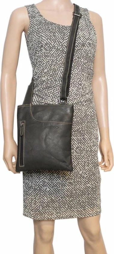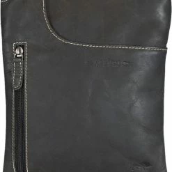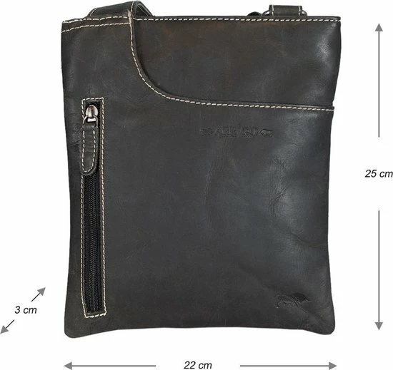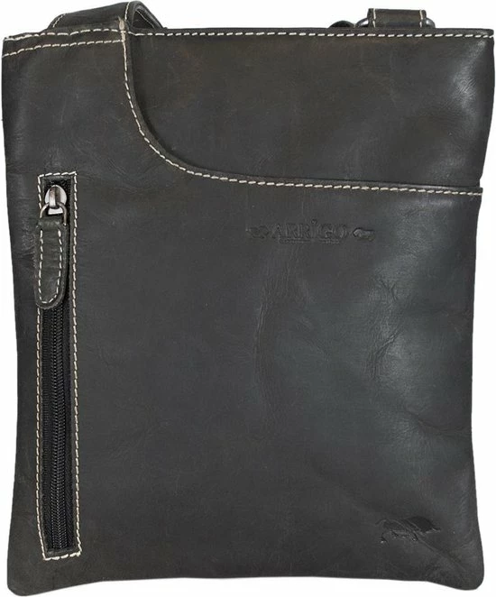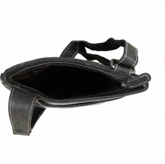 Heren of dames crossbody schoudertas gemaakt van vintage look zwart buffelleer met 4 ritsen en een groot steekvak en een stevige verstelbare schouderband, een handige platte leren design tas.