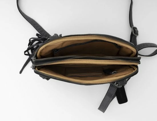 Dit is weer een super gaaf ontwerp van Bag2Bag. Een functioneel en overzichtelijke indeling waardoor je al je belangrijke spullen. Aan de voorzijde is vak met flap met daarachter 2 grote vakken met rits en op de achterzijde een kleiner vak met rits. In beide grote vakken is ruimte voor pasjes en is er een insteekvak en binnenvak. Je kunt de tas dragen als clutch of met de verstelbare schouderband als crossbody of schoudertas.