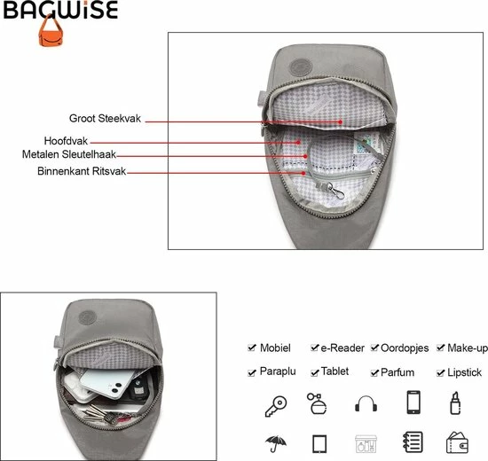 – 4 rits/vakken om uw spullen veilig en droog te kunnen beschermen inclusief een anti-diefstal rits/vak.