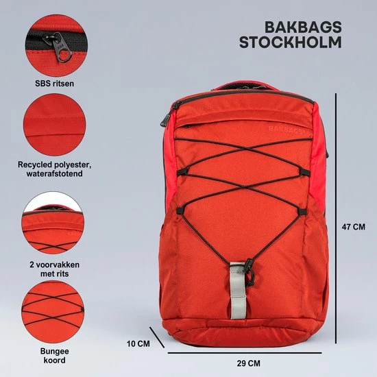 Aanbiedingen πŸ₯° Kopen πŸ”” BAKBAGS Stockholm Sport Rugzak Met Laptop Vak En Regenhoes – 25 Liter Inhoud – Geschikt Voor 13 Tm 17 Inch Laptops – Praktisch & Stijlvol Met 10 Vakken En Incl. Accessoires – Duurzaam & Gerecycled Materiaal – Rood-Zwart βœ”οΈ ✨