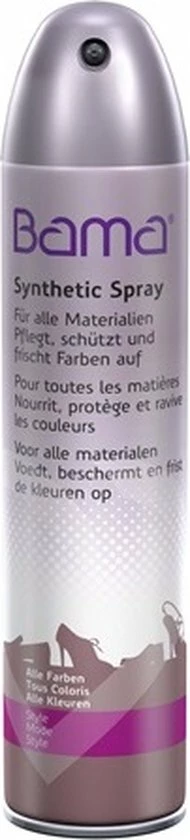 Houd uw schoenen verzorgd en beschermd met de Bama Synthetic Spray Voor Alle Kleuren En Materialen van 300 ml.Deze spray is speciaal voor alle soorten synthetische materialen in alle kleuren. De spray voedt, beschermt het oppervlak en frist de kleuren van uw schoenen op. Het vormt een onzichtbaar beschermend laagje en zorgt dat het materiaal kan blijven ademen.Gebruik regelmatig, minimaal 1x per maand, voor optimale bescherming en het beste resultaat.