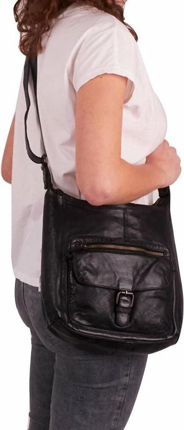Mooie leren schoudertas uit de Cow Lavato serie van Bear Design. De tas is afsluitbaar met een rits. Binnenin zit een steekvakje en een ritsvakje. Op de voorzijde zit een ritsvakje en een klepvakje met magneetsluiting. Op de achterzijde zit ook een ritsvak. Met de lange en verstelbare schouderband kun je de tas op de door jou gewenste lengte over de schouder of schuin over het lichaam (crossbody) dragen.