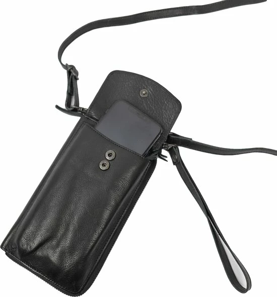 - Leren telefoontasje met ritsportemonnee op achterzijde