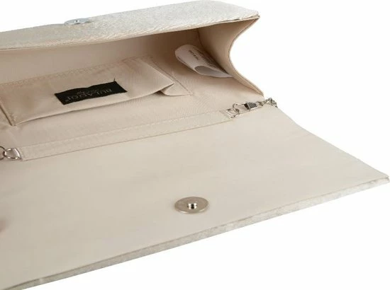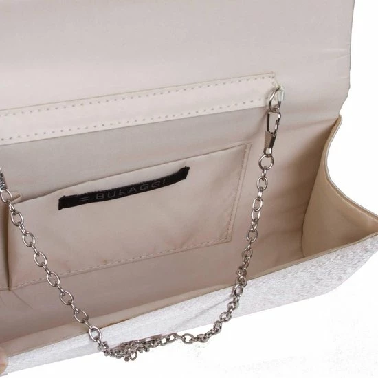 Ga stijlvol op pad met de Bulaggi clutch van Bulaggi. Deze chique clutch in de kleur champagne is gemaakt van een glanzende satijne stof. Gegarandeerd dat jij de show steelt met deze shiny tijdloze musthave! Ben je van plan om een dansje te gaan wagen? Ook daar is aan gedacht! Aan de zijkant van de tas is een handige afneembare schouderriem bevestigd. Voeg deze eyecatcher toe aan je feestoutfit!
