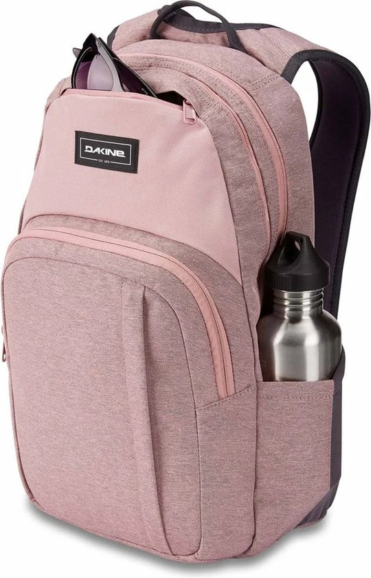 - Vakken: twee hoofdvakken, een klein vak aan de voorkant, een kleiner voorvakje, allen met ritssluiting/ twee insteekvakken aan de zijkanten voor een waterflesje/ gevoerd zonnebrilvakje