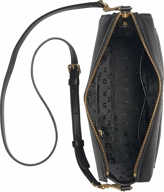 Deze stevige, geheel in leder uitgevoerde crossbodytas van DKNY heeft een prachtig klassiek design en is behalve voor dagelijks gebruik tevens geschikt voor speciale gelegenheden. De gouden accenten zijn subtiel en geven het design een meer tijdloze look. Op de voorzijde van de tas is een open zijvak. Het hoofdvak is toegankelijk via een veilige ritssluiting en om je smartphone of portemonnee geordend op te bergen heeft de tas van binnen een open en een afsluitbaar zijvakje.