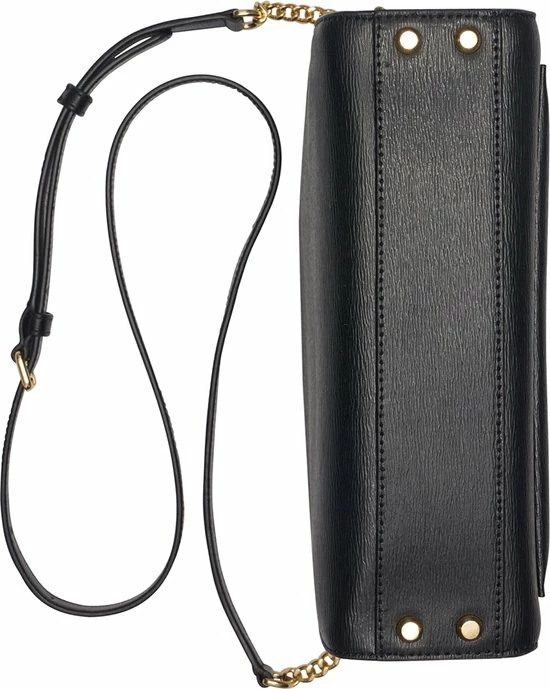 – Een verstelbare lederen draagband met een ketting van goudkleurige schakels.