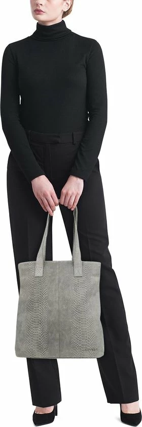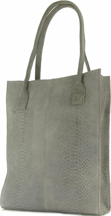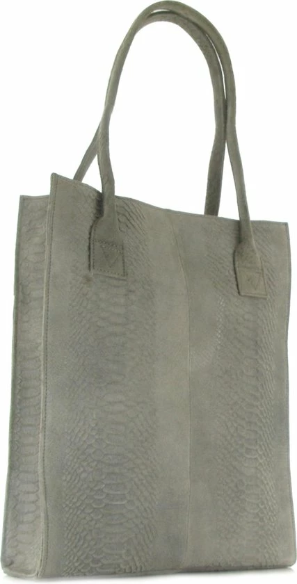 Smalle, trendy dames shopper uit de Portland Road collectie van DSTRCT. Gemaakt van suede leer en voorzien van mooie slangenprint.