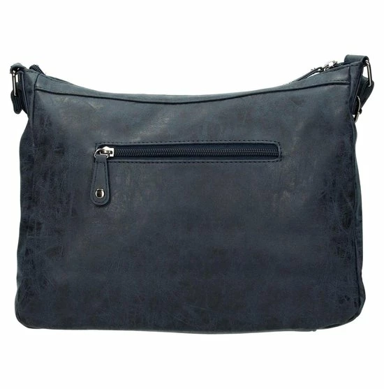 Deze blauwe Enrico Benetti schoudertas uit de serie Ardèche is een trendy en stevige dames tas. Binnenin zitten naast het hoofdvak nog eens twee extra vakken waarvan één met ritssluiting. Aan de achterkant zit ook nog een extra vak met ritssluiting. Deze schoudertas is gemaakt van kunstleer en heeft een leatherlook uitstraling. De tas sluit door middel van een ritssluiting. De schouderband is verstelbaar en bied de mogelijkheid om de tas op verschillende lengtes te dragen.