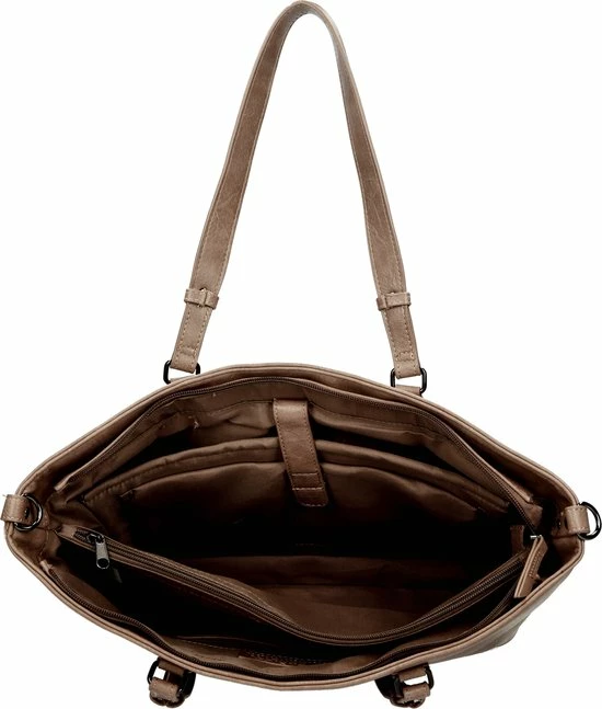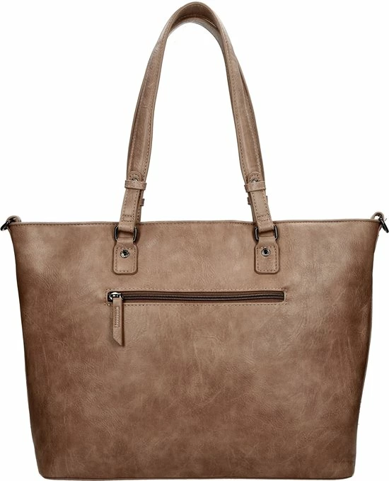 Verder heeft de tas nog twee insteekvakjes voor bijvoorbeeld je telefoon en een extra ritsvakje. Op de achterkant heeft deze schoudertas nog een achtervakje met rits. Je draagt de tas aan de twee ruime handvaten met luxe afwerking of aan de lange afneembare en verstelbare schouderband.