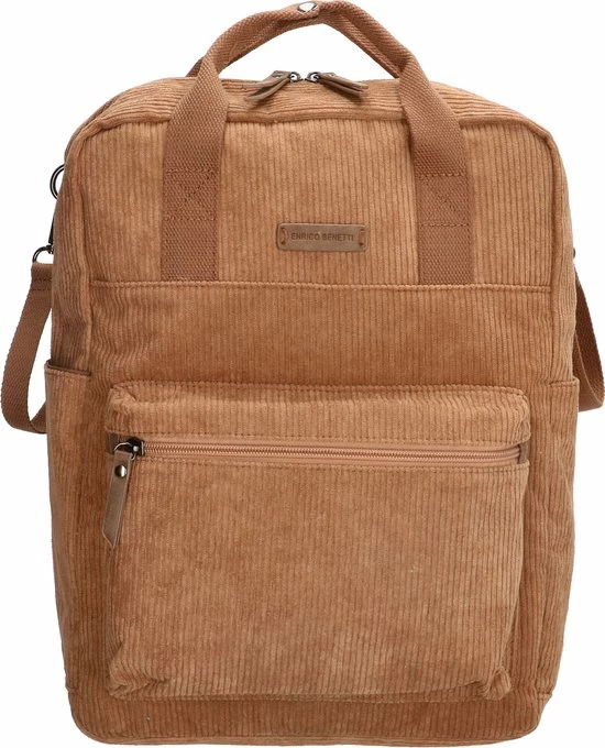 Stijlvolle rugzak van Enrico Benetti uit de Marley serie. Deze leuke rugzak heeft een corduroy ribstof buitenzijde, de buitenzijde. De rugzak beschikt over een zeer ruim hoofdvak met ritssluiting. In het hoofdvak met ritssluiting zit een ritsvak, een laptopvak 14 inch, een steekvak en een smartphonevakje. Ook heeft de rugzak een voorvak en een achtervak met ritssluiting en 2 zijvakken. De tas beschikt over 2 verstelbare schouderbanden, hierdoor kan je de tas altijd op de gewenste lengte dragen.