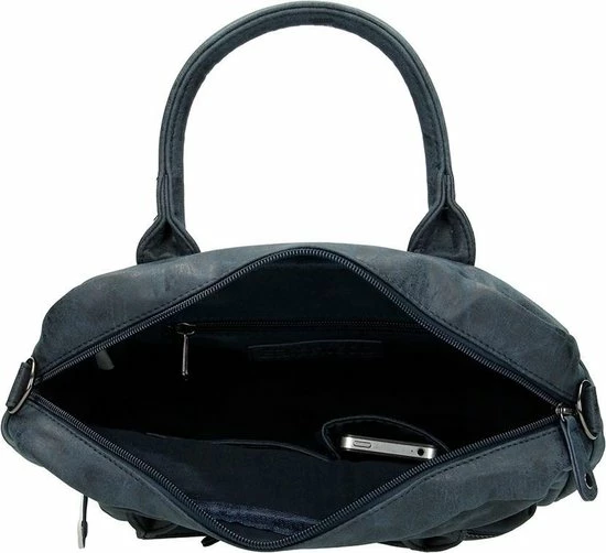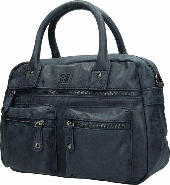 Deze blauwe Enrico Benetti handtas uit de serie Jura is een trendy damestas. Binnenin zitten naast het hoofdvak nog eens twee extra opbergvakken waarvan één met ritssluiting. Aan de achterkant zit nog een opbergvak met ritssluiting. Voldoende ruimte dus voor het meenemen van al je bezittingen. Deze handtas is gemaakt van kunstleer, heeft een leatherlook uitstraling en sluit door middel van een ritssluiting. De bijgeleverde schouderband is afneembaar en verstelbaar en bied de mogelijkheid om de tas op meerdere manieren te dragen. Als je de handen vol hebt kan je hem dus gerust om je schouder dragen!