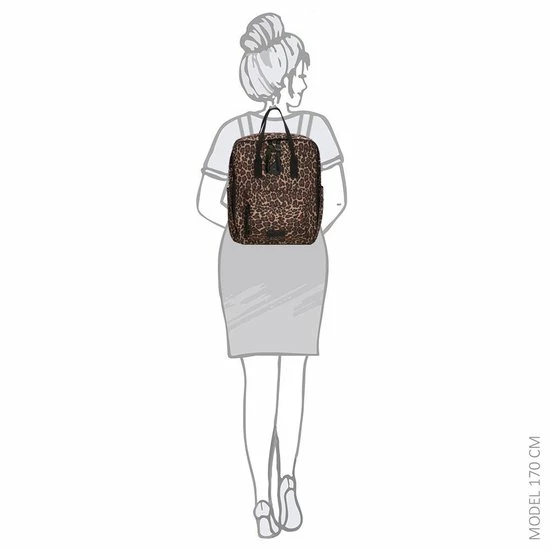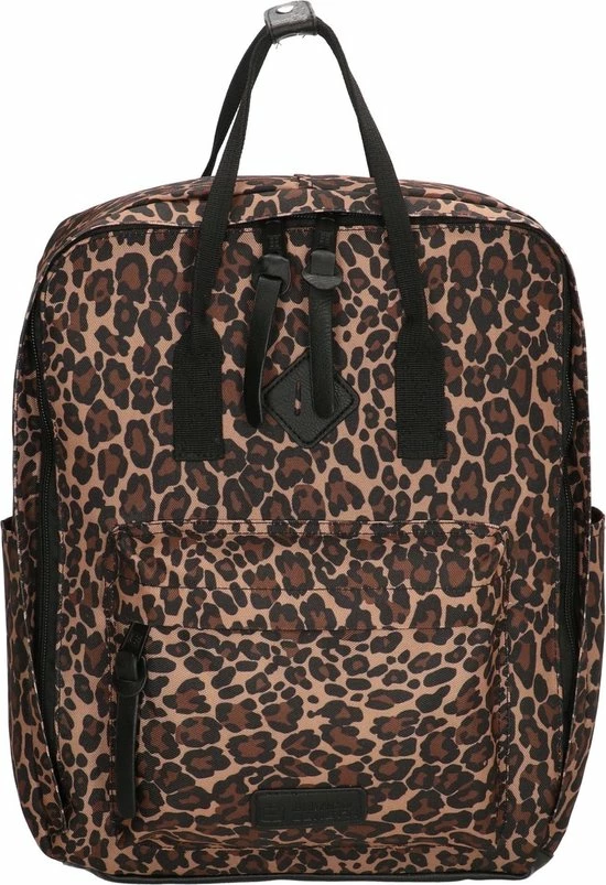 Deze hippe rugtas met beestachtig goede panterprint uit de serie Londen van Enrico Benetti neem je overal mee naartoe! De rugtas heeft een hoofdvak met 14″ laptopvak en een speciaal vak voor je drinkfles. In het voorvak berg je kleine spulletjes op en de tas heeft aan beide zijden ook nog steekvakken voor extra opbergruimte. De tas is gemaakt van stevig polyester en afgewerkt met leuke zwarte kunstleren details. Enrico Benetti heeft binnen de Londen serie verschillende soorten en maten rugzakken beschikbaar in allerlei dierenprints!