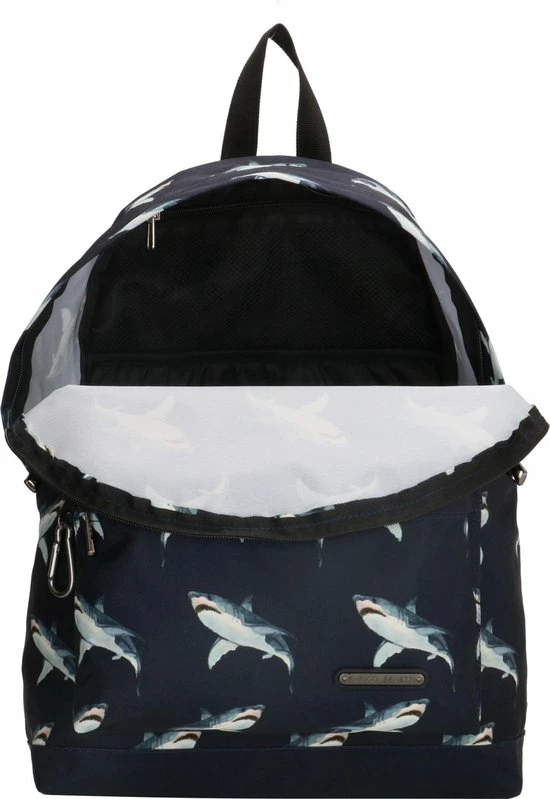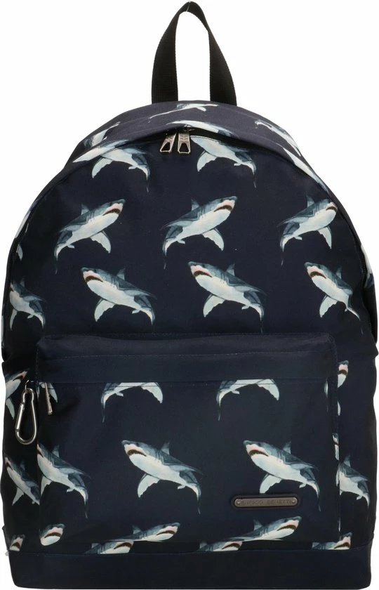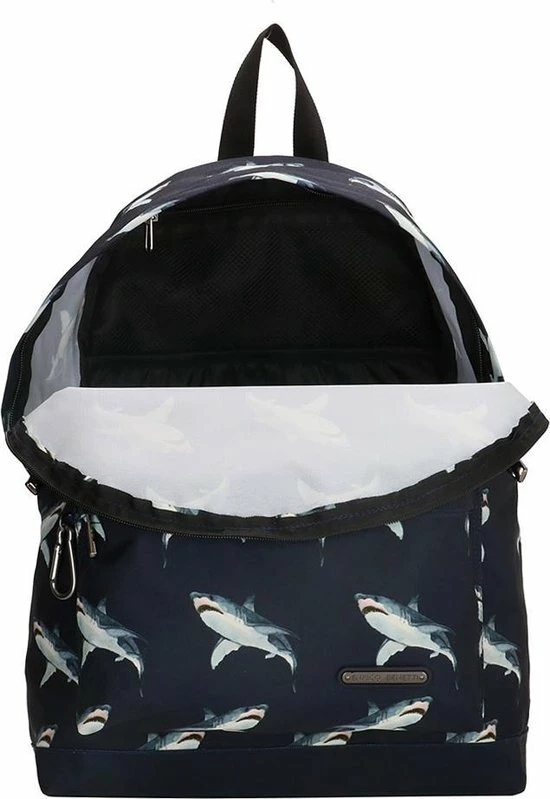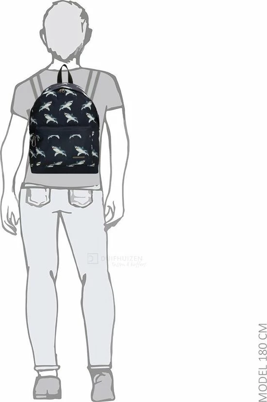 In de Nairobi serie van Enrico Benetti vind je praktische rugzakken met een leuke dierenprint. Deze rugzak heeft een gave print met haaien met donkerblauwe ondergrond. Leuk voor naar school of gewoon elke dag. Deze rugtas heeft een 14β laptopvak, een ruim voorvak en in het hoofdvak ook nog een extra ritsvakje voor kleine spulletjes. Tevens heeft de tas aan de buitenkant een musketonhaak waaraan je ook nog gemakkelijk iets bevestigt. De schooltas is gemaakt van stevig polyester, heeft een verstevigd rugpaneel en verstevigde schouderbanden die je kunt verstellen voor jouw ideale draagcomfort. Bekijk ook andere dierenprints in de Nairobi rugzakken serie van Enrico Benetti.