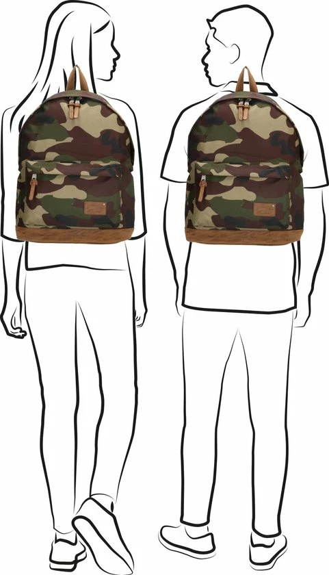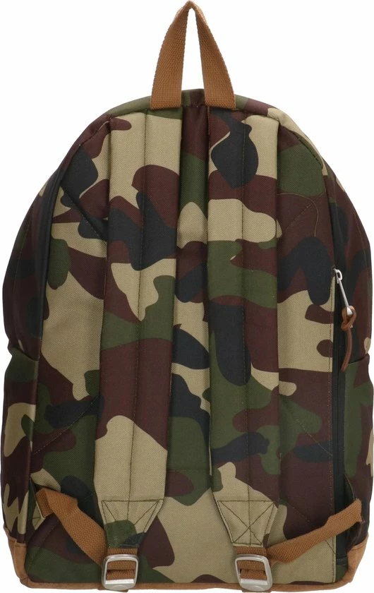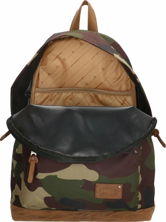 Dit klassieke model rugtas met outdoor-look is ideaal voor naar school, werk of iedere dag. Maak kennis met onze Santiago serie van Enrico Benetti. Deze serie kenmerkt zich door het stevige polyester in basic kleuren, bloemen of camouflage print, gecombineerd met het bruine PU met ruwe uitstraling. Deze rugtas van vertrouwd formaat heeft in het hoofdvak een gewatteerd laptopvak van 14″, voorvak en veiligheids ritsvak aan de achterkant. De tas is afgewerkt met leuke kunstlederen details, metalen hardware en verstelbare banden van bruin katoen.