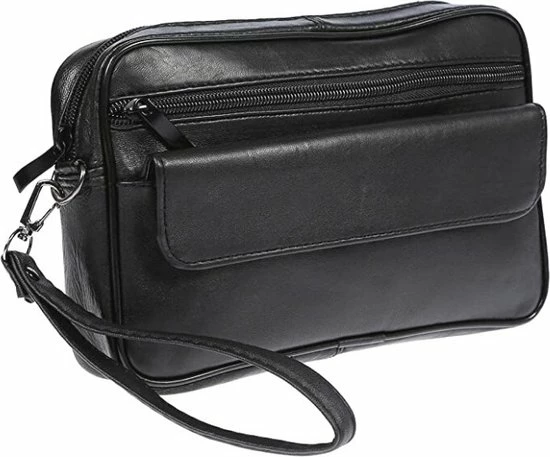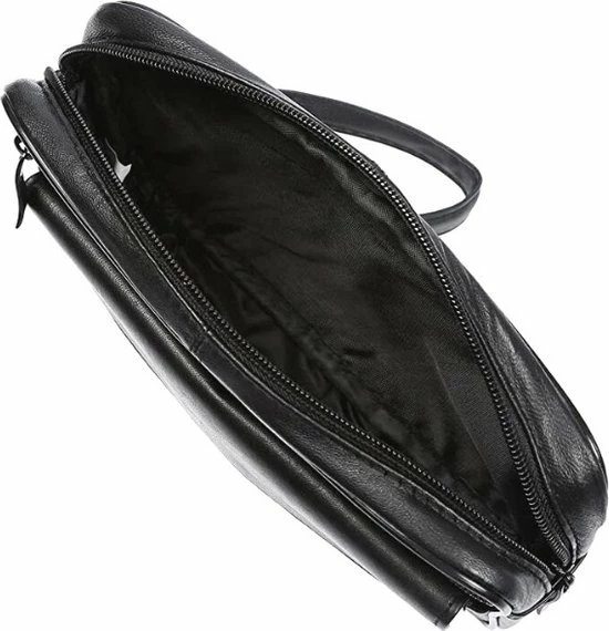 Leren polstas zwart met veel vakken. Ben je op zoek naar een luxe polstas van goede duurzame kwaliteit, dan is dit de ideale reis polstas. De polstas is geschikt voor heren en dames, met een afneembaar bandje. De polstas is niet te groot en diep, maar heeft een mooi formaat. Door de vele vakken is alles eenvoudig in te delen, en kan er gemakkelijk een telefoon, portemonnee, paspoort, reistickets, sleutels etc. meegenomen worden. Hierdoor heb je alles bij elkaar en in de hand.
