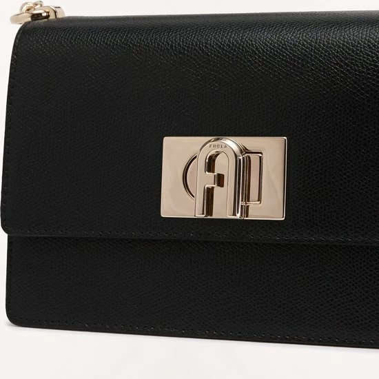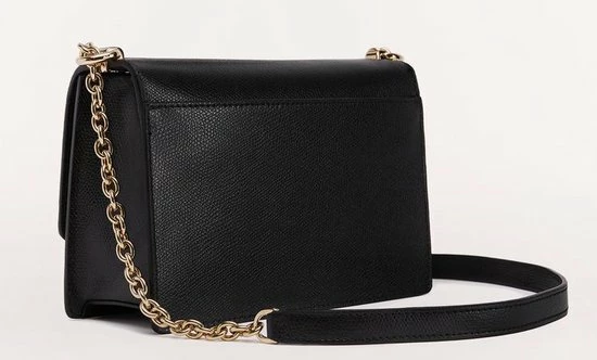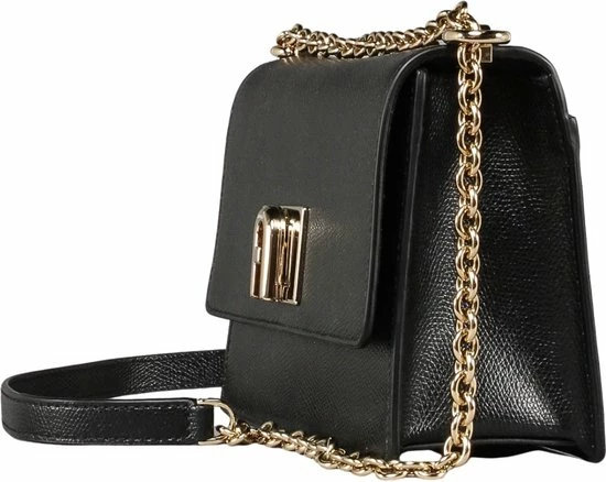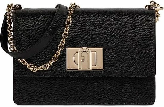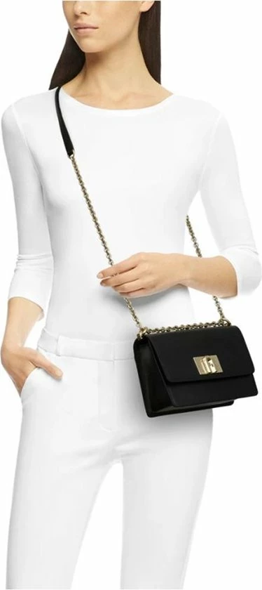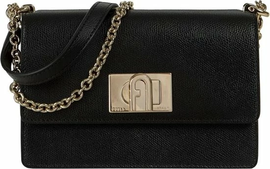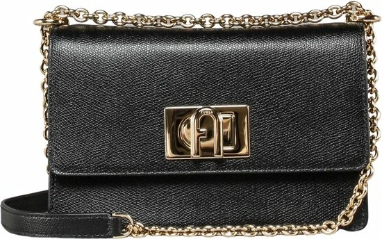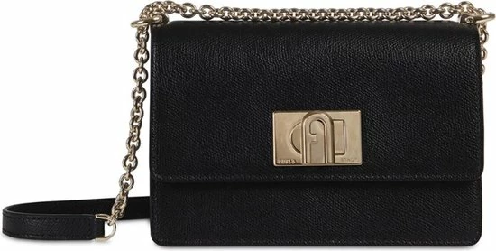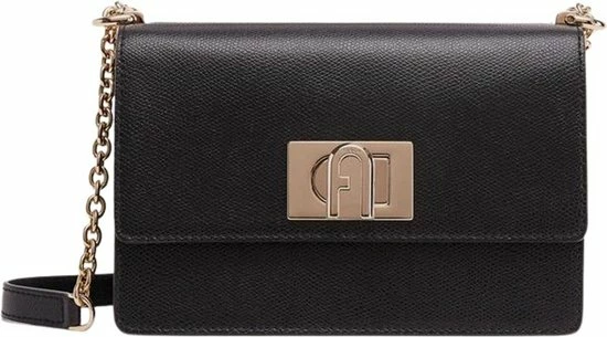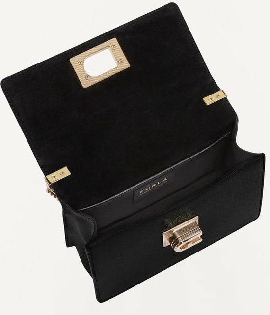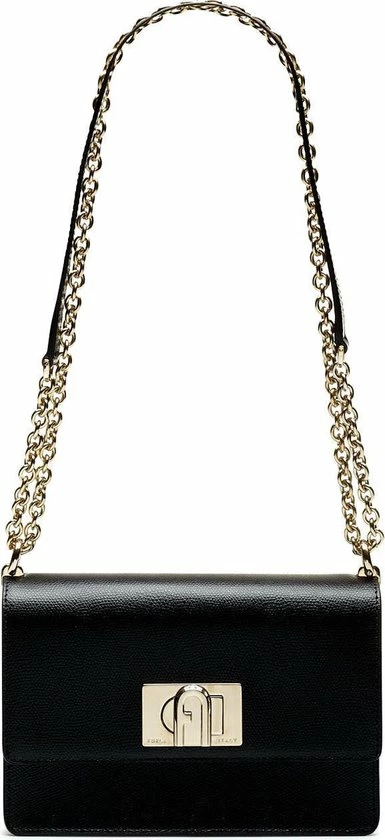 Klassieke kleine crossbodytas in de kleur zwart uit de nieuwste collectie van Furla. De tas is voorzien van een draaisluiting waar het merklogo is bevestigd. De tas beschikt over goudkleurige accenten wat zorgt voor een luxe uitstraling. De tas is makkelijk te combineren voor een avond uit of een casual outfit.