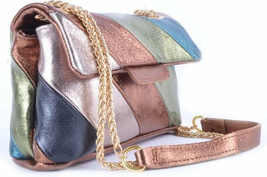 Giuliano Rainbow Metallic Schoudertas gemaakt van echt leer. Made in Italy