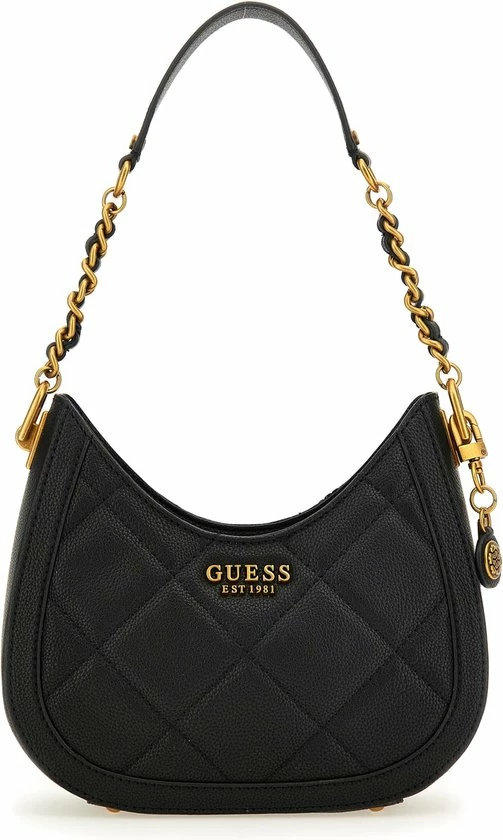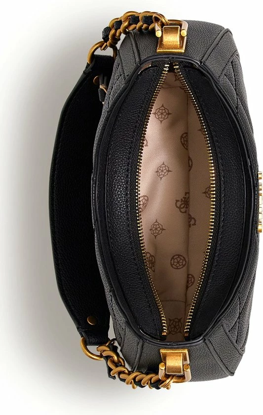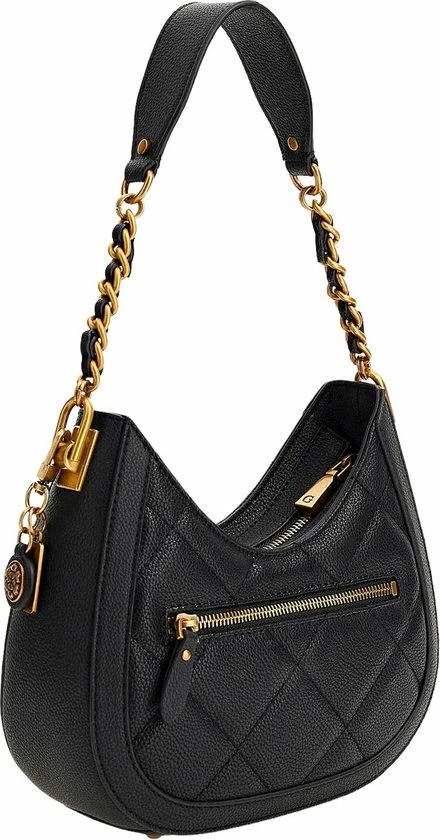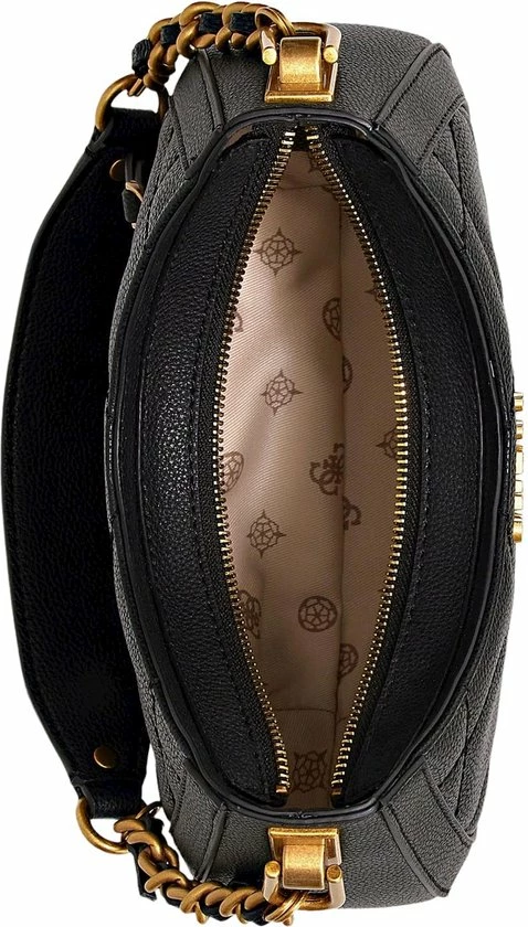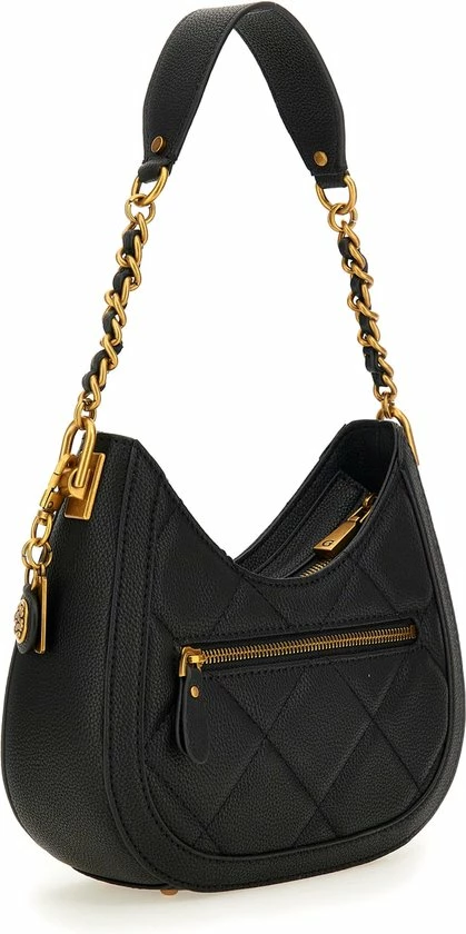 Zwarte schoudertas met gouden details en mooie stiksels uit de nieuwe collectie van Guess. Combineer met een bijpassende portemonnee voor de complete look.