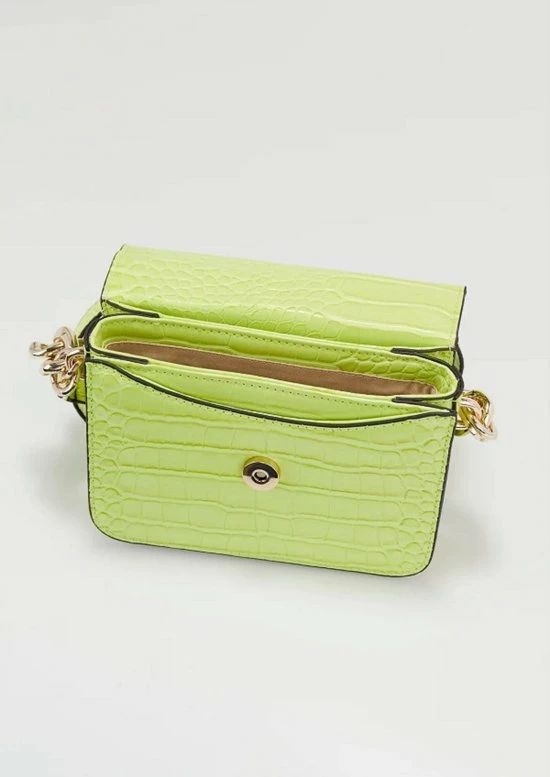 Voeg deze zomer wat kleur toe aan je handtasgarderobe met de nieuwe Retour mini-crossbodytas in de kleur Lime, Coral of Turquoise. De handtas is ontworpen met een croco PU-basis en glimmende gouden hardware, en heeft een verstelbare crossbody-riem, kettingschakelschouderriem, GUESS-logodetails, een halve flapsluiting, handgreep aan de bovenkant, interne ritssluiting en kaartsleuven en een achterzak met rits. Perfect voor je volgende dagje uit met de meiden!