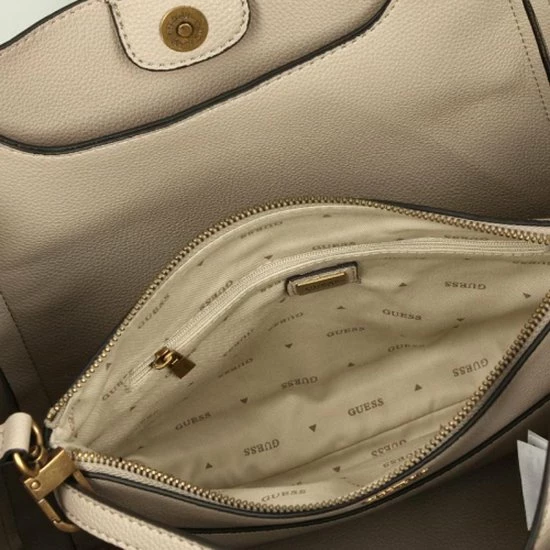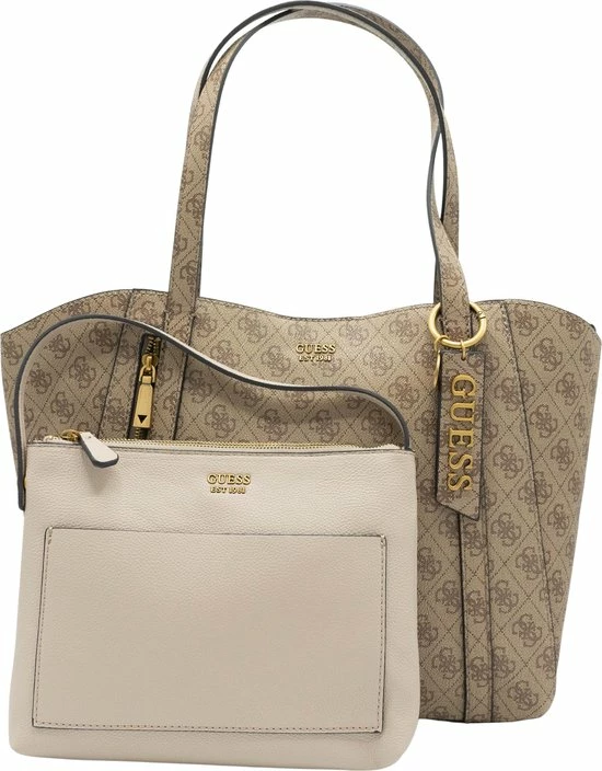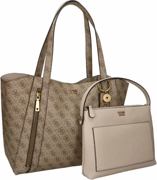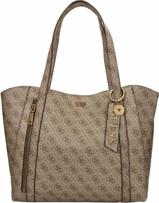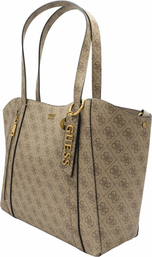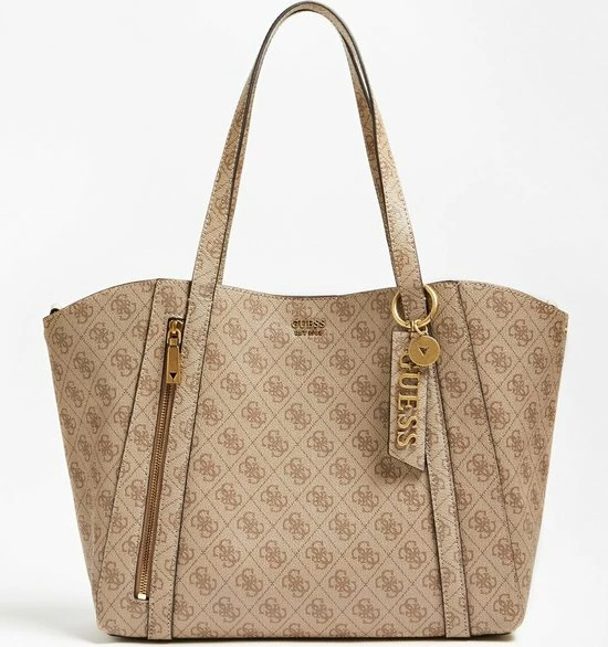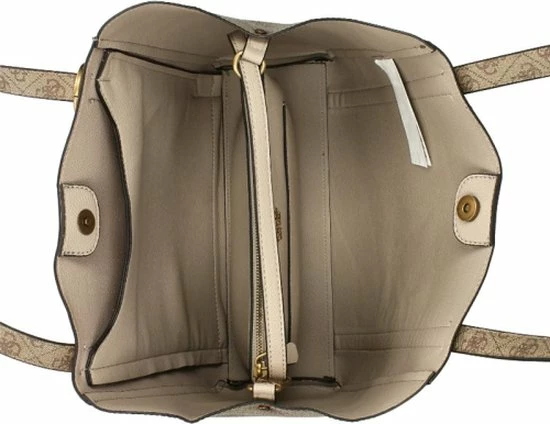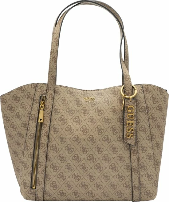 Wauw, wat gaaf! Deze schoudertas is echt high fashion en komt uit de nieuwste Naya collectie van Guess. Het bruin van de tas heeft een canvas patroon voorzien van het bekende Guess motief en een logo dat er mooi uitspat. Leuke details om er bij te vermelden zijn de goudekleurige accenten. Daarmee heeft Guess met deze dames crossbodytas uit de Naya lijn weer iets prachtigs neergezet. Ook met de functionaliteit wordt gespeeld. Zo zit er aan de achterzijde van de tas een extra ritsvak en het hengsel is lang genoeg om hem over je schouder te kunnen dragen.