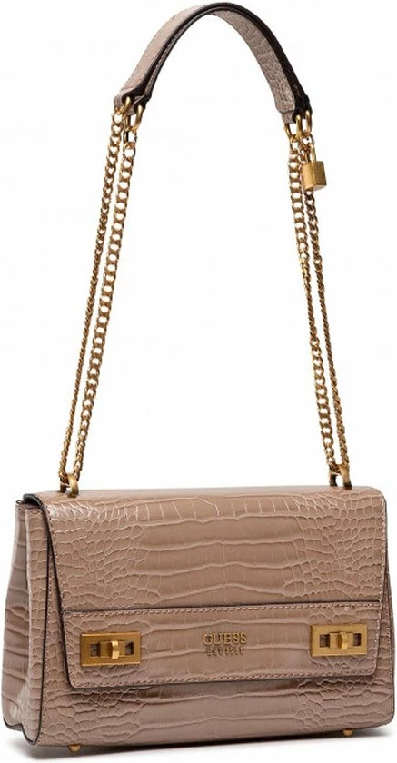 Mooie dames handtas uit de nieuwste collectie van Guess. De tas is voorzien van een lak croco print en is afgewerkt met goudkleurige keting hengsels wat zorgt voor een luxe uistraling. De tas kan zowel op de schouder gedragen worden of als handtas. Leuk te combineren op een jeans maar kan ook goed met een jurk.