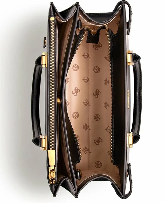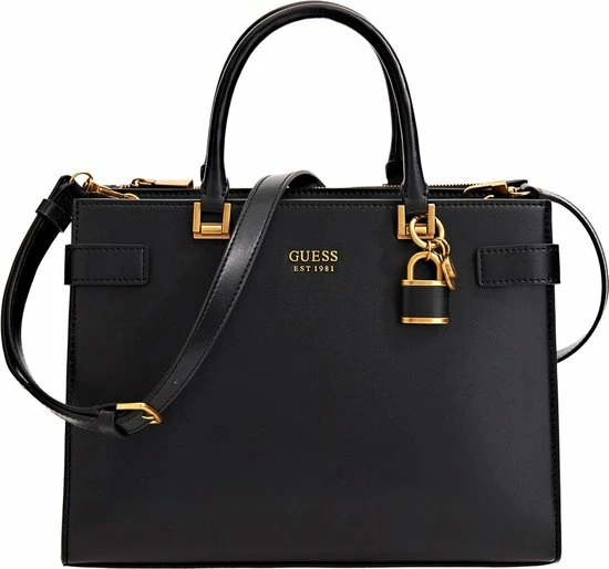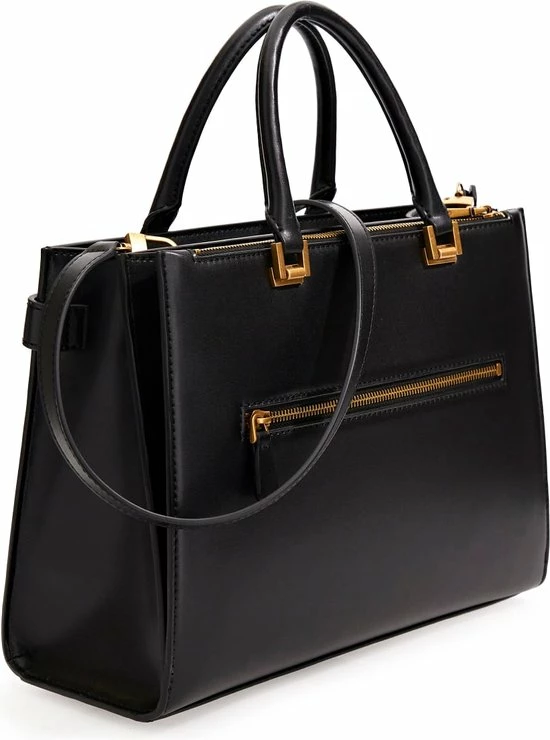 Mooie zwarte basic handtas afgewerkt met gouden details uit de nieuwe collectie van Guess.