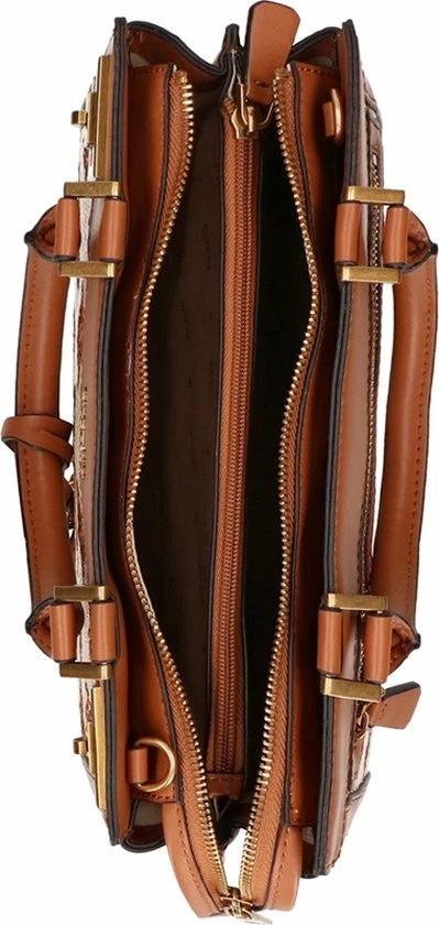 De tas heeft veel vakken aan de binnenkant, wat erg handig is om al je spullen georganiseerd mee te nemen. In het midden van de tas bevindt zich een groot ritsvak, wat de tas in twee hoofdcompartimenten verdeelt. Daarnaast zit ook nog een steekvak met magneetsluiting. Aan de ene zijkant zit een ritsvak en aan de andere zijkant twee steekvakken.