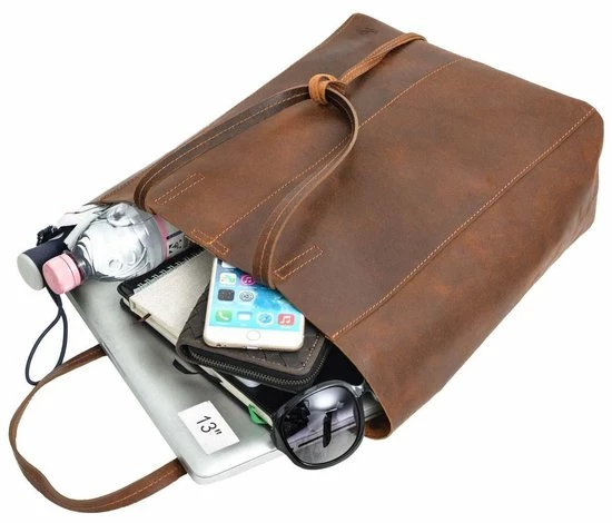 Stijlvol en praktisch, deze shopper begeleidt u op uw weg door de winkels van uw stad. Veel ruimte en een geweldig design maken deze handtas tot een geweldige metgezel. Het rundleder overtuigt met klassieke elegantie en natuurlijke charme. Binnenin heb je ruimte voor notebooks, een waterfles en zelfs een MacBook 13-inch. Er is ook een kleine extra tas voor cosmetica en smartphone. Zo verdwijnen kleine dingen niet in het grote interieur van de tas. Het interieur, dat anders open wordt gehouden, wordt losjes gesloten door een lipje met een kliksluiting.