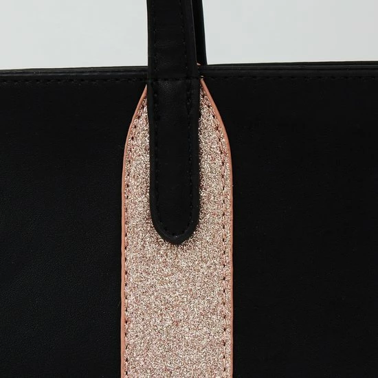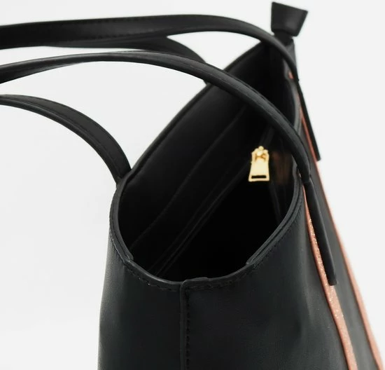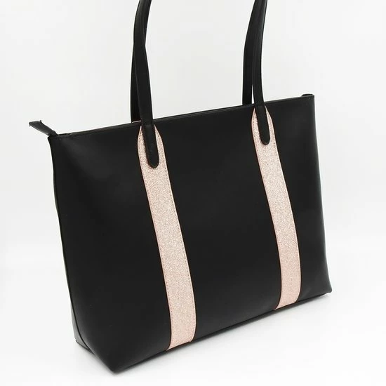 Geschikt voor die momenten waarbij u net iets meer wilt meenemen. De metaal glans banden lopen zowel aan de voor- en achterzijde geheel door en geven de tas een duidelijk onderscheidend vermogen.