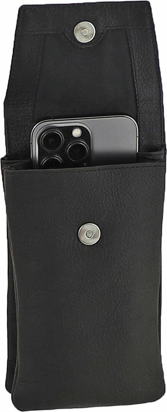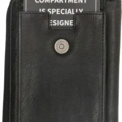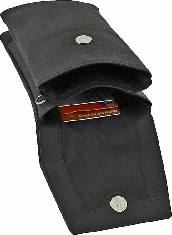 Het tasje beschikt over twee vakken die af te sluiten zijn door middel van een klep met magneetsluiting. In het voorste vak kunt u een telefoon kwijt van maximaal 17,0 x 9,0 cm. Het achterste vakje biedt de mogelijkheid om andere spullen op te bergen en beschikt ook nog over drie sleufjes voor pasjes. Aan de achterzijde van het tasje zit nog een handig ritsvakje waar bijvoorbeeld muntgeld in opgeborgen kan worden.