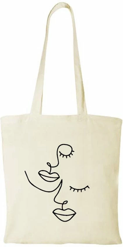Beste Verkoop 🧨 Goedkoop βœ”οΈ Little Printz Katoenen Tas Naturel | Tassen Dames | Shopper | Laptop Tas | Abstract Gezicht Dubble Woman 🀩 ❀️