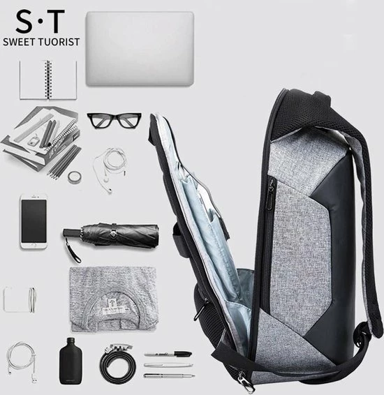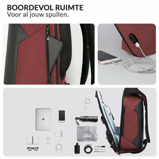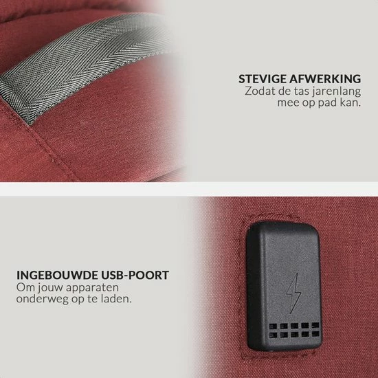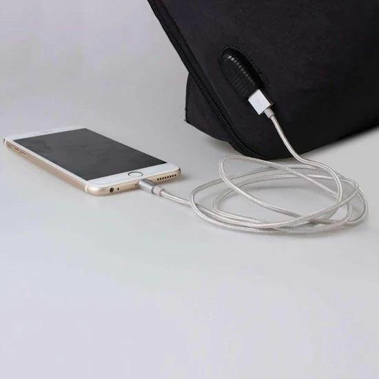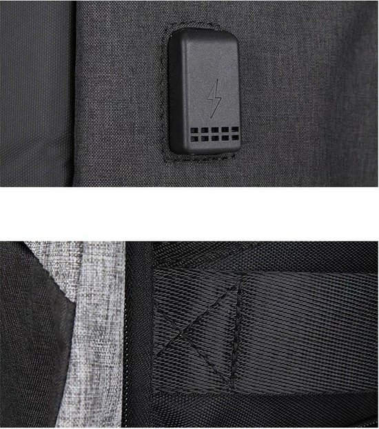 De rugtas beschikt ook over een ingebouwde USB-poort. Hierdoor kan je gemakkelijk je telefoon opladen via een powerbank of laptop. Het voordeel van deze tassen is dat de USB-poort zich aan de buitenkant van de tas bevindt, waardoor je tijdens het laden gewoon gebruik kunt maken van je telefoon.