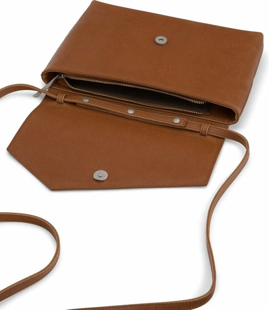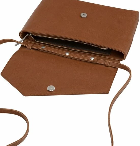 Crossboy tas / clutch met asymmetrische flap en ritssluiting in het hoofdvak voor veiligheid. Wordt geleverd met een schouderriem die afneembaar en verstelbaar is met drukknopen .