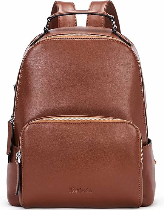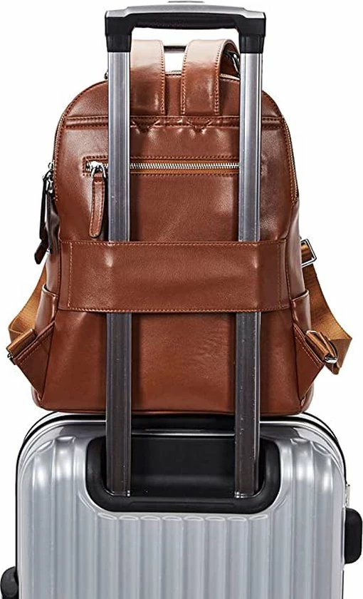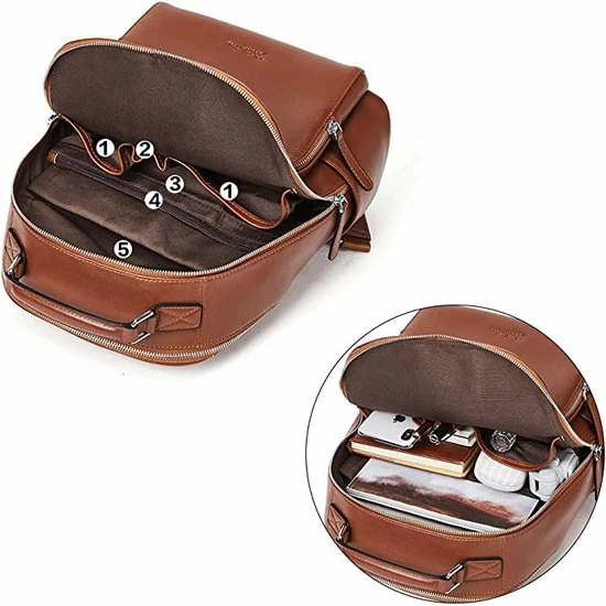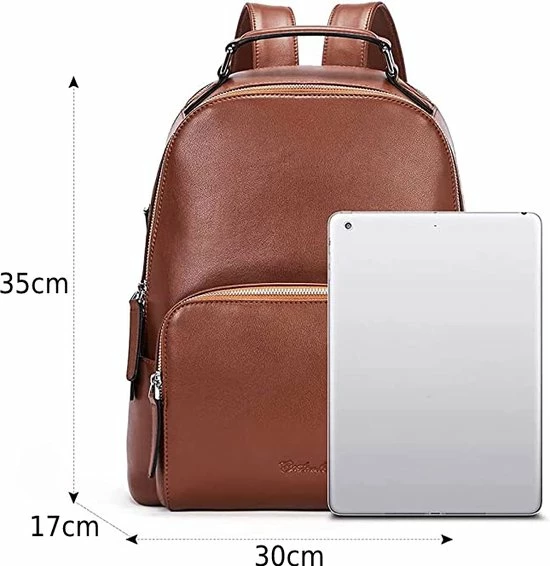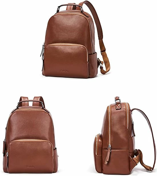 - De leren rugzak is gemaakt van hoogwaardig echt rundleer en een stoffen voering, die modieus en duurzaam is. Het heeft een U-ritsopening en een gewatteerd laptopvak met accordeonverdeling.