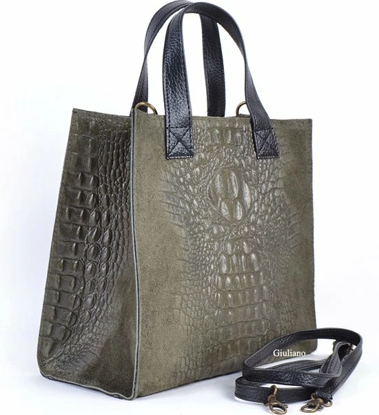 Groothandel β€οΈ Flash-uitverkoop π Merkloos Dames Lederen Handtas /Made In Italië/Kroko Print/ Olijfgroen β€οΈ π