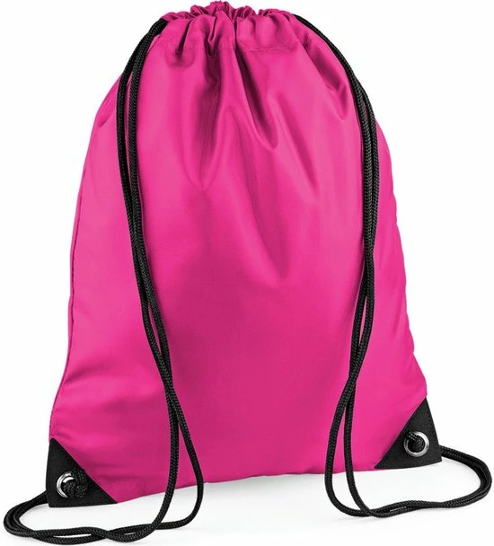 Nylon gymtas van waterafstotende stof en rijgkoord. Inhoud van de gymtasjes is ongeveer 11 liter. Afmeting van de gymtas is 45 x 33 cm.