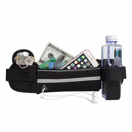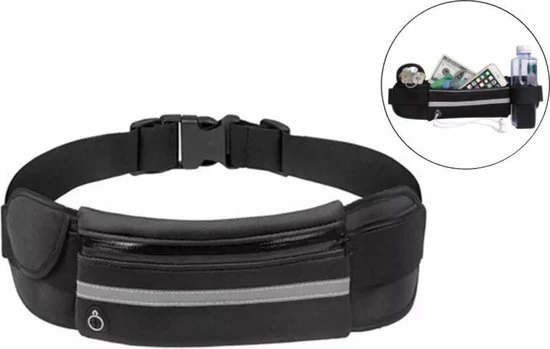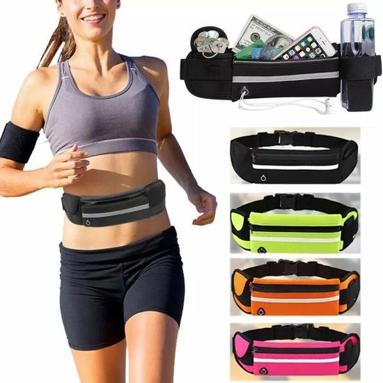 Het ruime opberg vak is voorzien van een rits en biedt voldoende ruimte om deze spullen (vooral je mobiele telefoon) veilig en goed op te bergen. Door de speciale uitgang in het buideltasje kan je het snoertje van je koptelefoon/oortjes gewoon aansluiten waardoor je tijdens het hardlopen of andere sport kan blijven luisteren naar muziek, een podcast of naar een hardloopprogramma/ hardloop app.