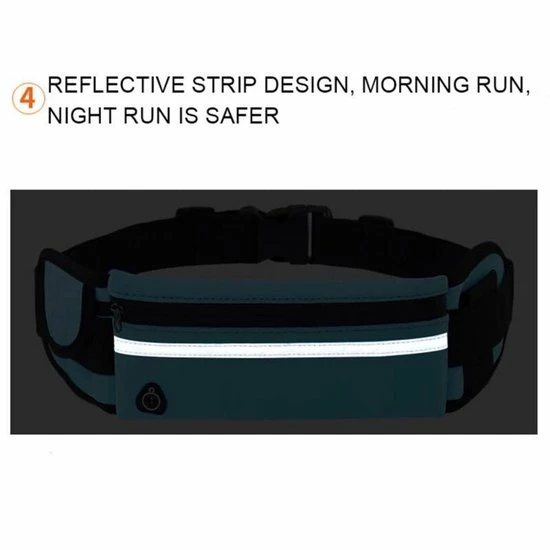 De reflecterende elementen op deze running belt vergroten tevens de zichtbaarheid in het donker.