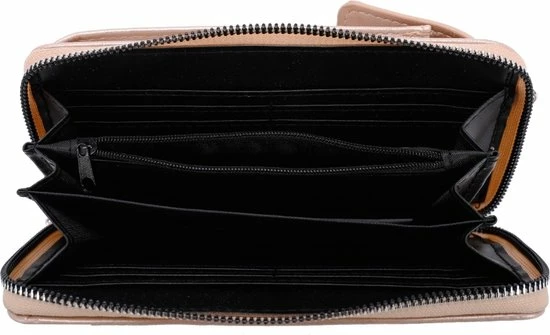 Deze mooie Zip Around portemonnee van het merk Ines Delaure is makkelijk om al je pasjes, geld en telefoon mee te nemen. De portemonnee heeft een speciaal telefoonvak aan de voorkant voor je smarttelefoon. Ook heeft de portemonnee een los meegeleverd schouderbandje zodat je hem makkelijk kunt dragen. De portemonnee heeft 4 grote vakken aan de binnenkant en een vak met rits. Ook zitten er 8 kleine vakjes voor pasjes.