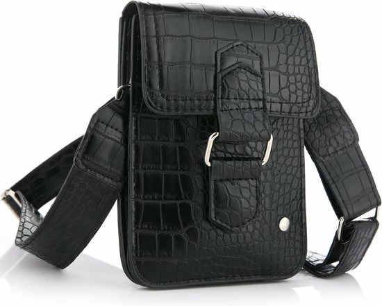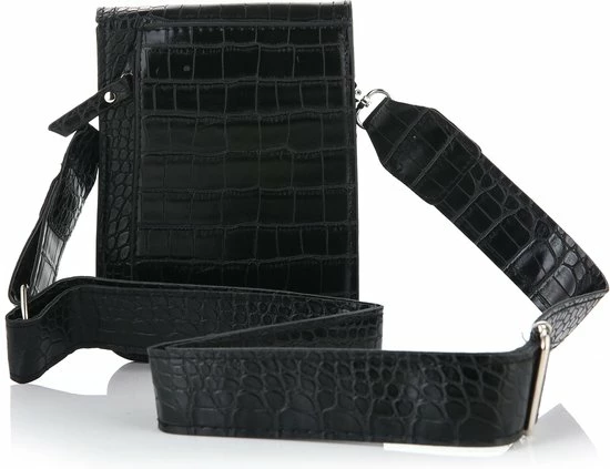 Deze Croco Black tas is een super handig telefoon- en schoudertasje.