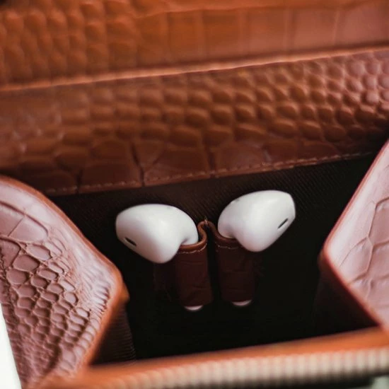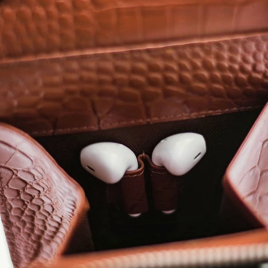 Onder de flap met magneetsluiting zie je twee grote steekvakken. Het ene steekvak bevat 10 kleinere steekvakken speciaal voor pasjes. Het andere steekvak heeft een speciale opbergmogelijkheid voor jouw oordopjes. Bovendien kunnen in beide steekvakken kleinere items opgeborgen worden, zoals enkele sleutels, make-up en papiergeld.