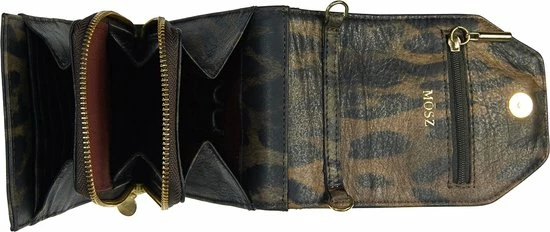 Onder de flap met magneetsluiting zie je twee grote steekvakken. Het ene steekvak bevat 10 kleinere steekvakken speciaal voor pasjes. Het andere steekvak heeft een speciale opbergmogelijkheid voor jouw oordopjes. Bovendien kunnen in beide steekvakken kleinere items opgeborgen worden, zoals enkele sleutels, make-up en papiergeld.