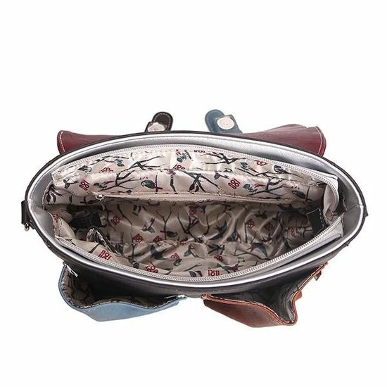 Deze ‘Sammy’ is een gaaf ‘old-school/retro’ uitvoering van de originele boekentas, maar wel een stuk soepeler en handzamer! Toch heeft hij voldoende bergruimte: de twee voorvakken sluiten met de magneten in de flap. Hierin kun je fijn je sleutels of mobiel bewaren: uit het zicht maar binnen handbereik. Onder de flap vind je het hoofdvak, dit met een rits sluit. Zo houd je alles lekker droog. In het hoofdvak bevinden zich nog 3 vakken: 2 open en een ritsvak voor alles wat je extra veilig wilt bewaren. Van de voering wordt je vrolijk: een lichte print van vogeltjes. Het hoofdvak biedt genoeg ruimte voor broodtrommel en/of tablet of e-reader. Aan de achterzijde bevindt zich nog een ritsvak, dat sluit met het bekende Noi-Noi handje. Handig voor oortjes, opladers, pasjes of abonnement.