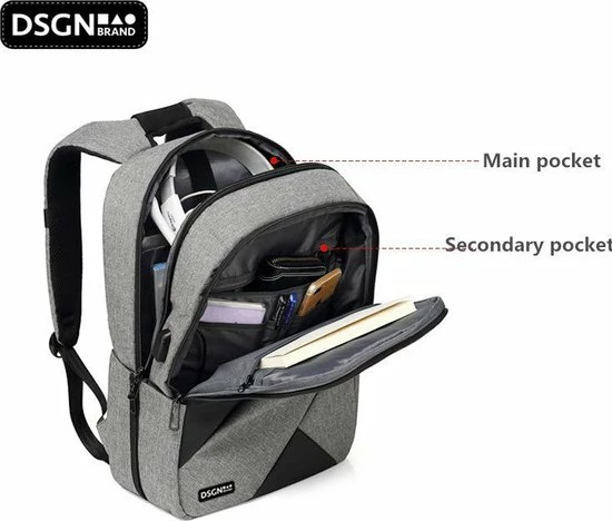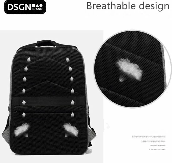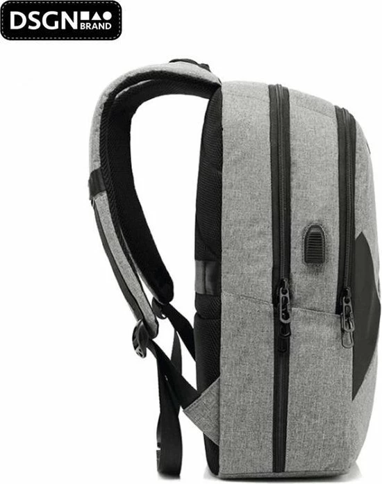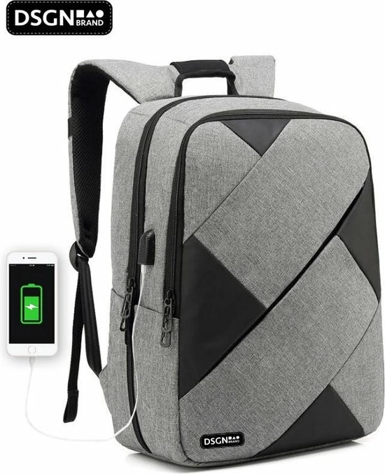 De DSGN BRAND® laptoptas rugzak met USB aansluiting in de kleur grijs / zwart van nylon en PU leer biedt de beste bescherming voor onderweg. De laptop rugtas met Geometric design is geschikt voor laptops van 13 / 14 / 15 / 16 inch. Bovendien is het een echte eye catcher. Het moderne design van de laptoptas rugtas trekt meteen de aandacht onderwerg, in je vrije tijd, werk of school.
