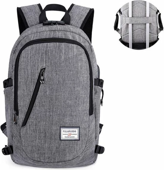 Coupon π Flash-uitverkoop β Rugtas/Rugzak, Laptoptas En Schooltas Voor Dames, Heren, Laptop En School – Met USB En 3.5mm Audio Jack Aansluiting – Lovnix Fularuishi Bag101 Grijs β π