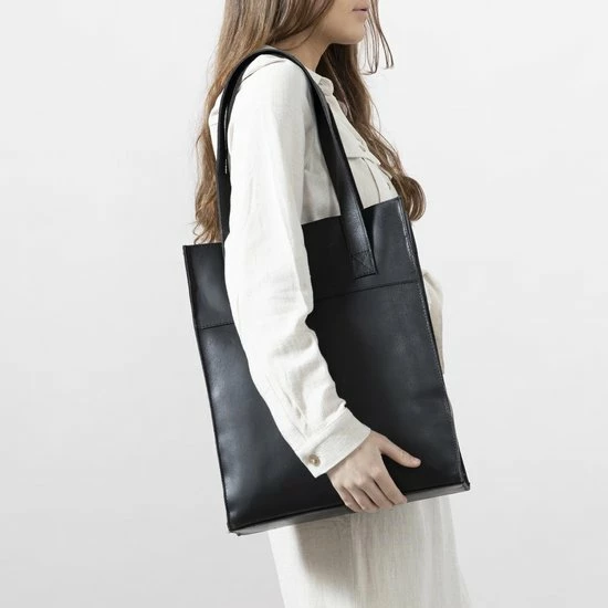 Zwarte shopper uit de Bags Premium Collectie van Sacha. De tas is volledig gemaakt van leer en biedt ruimte aan al jouw belangrijke eigendommen. Aan de binnenzijde vind je een laptop sleeve voor een 13 inch laptop, twee insteekvakjes en een klein ritsvakje waar je bijvoorbeeld kleingeld op kunt bergen. De tas sluit door middel van een rits en de afmetingen zijn 40x31x9 (hxbxd) cm. De schouderband heeft een lengte van 77 cm. Maak gebruik van de juiste onderhoudsproducten om de tas zo lang mogelijk mooi te houden!