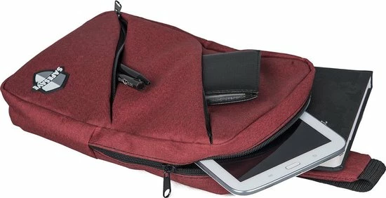 Compact, functioneel en van goede kwaliteit zoals je gewend bent van SafeSave. Deze rugtas over je schouder, op je rug, maar kan ook prima aan de voorkant gedragen worden. Dankzij de verstelbare band, past de tas altijd! Handig voor kleinere devices, maar ook voor je flesje water, sleutels, telefoon, een boekje of andere persoonlijke bezittingen.